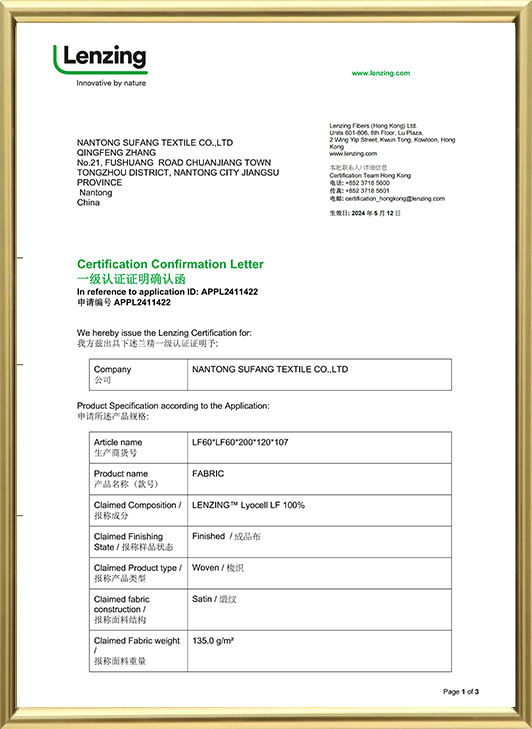 Sertifikat tencel Lenzing