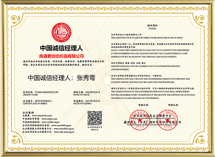 Sertifikat perusahaan yang menghormati kontrak dan mempertahankan kredit