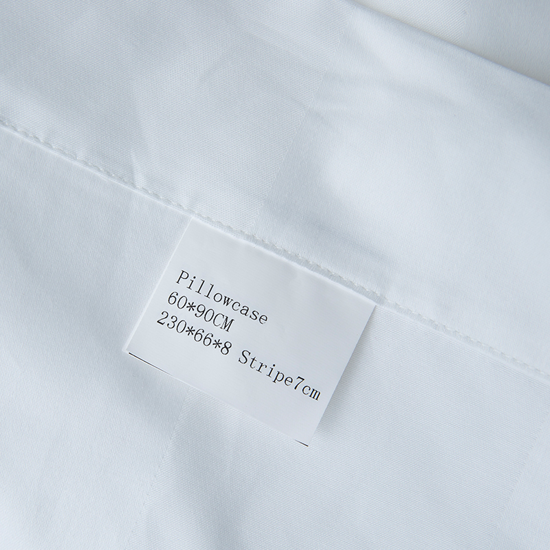Set Seprai Sateen Stripe Plain White 750TC 100% Katun 100% Untuk Hotel Bintang Lima 7cm dibuat dari 100% katun stapel panjang dengan jumlah benang tinggi 750 TC. Jumlah benang yang tinggi ini berarti kain ditenun dengan padat, menghasilkan rasa yang sangat halus, lembut, dan tahan lama untuk pengalaman bersentuhan dengan kulit yang luar biasa. Tenunan satin memberikan kilau halus dan berkilau serta tekstur halus untuk kenyamanan murni. Tidak seperti tenun biasa, kain satin memiliki tirai yang indah dan tahan kusut, sehingga menjaga tempat tidur Anda tetap segar dan elegan. Ciri khas koleksi ini adalah desain garis satin halus sepanjang 7cm. Garis-garis dengan jarak sempurna ini menambahkan tekstur halus dan daya tarik visual tanpa terlalu menonjol.
